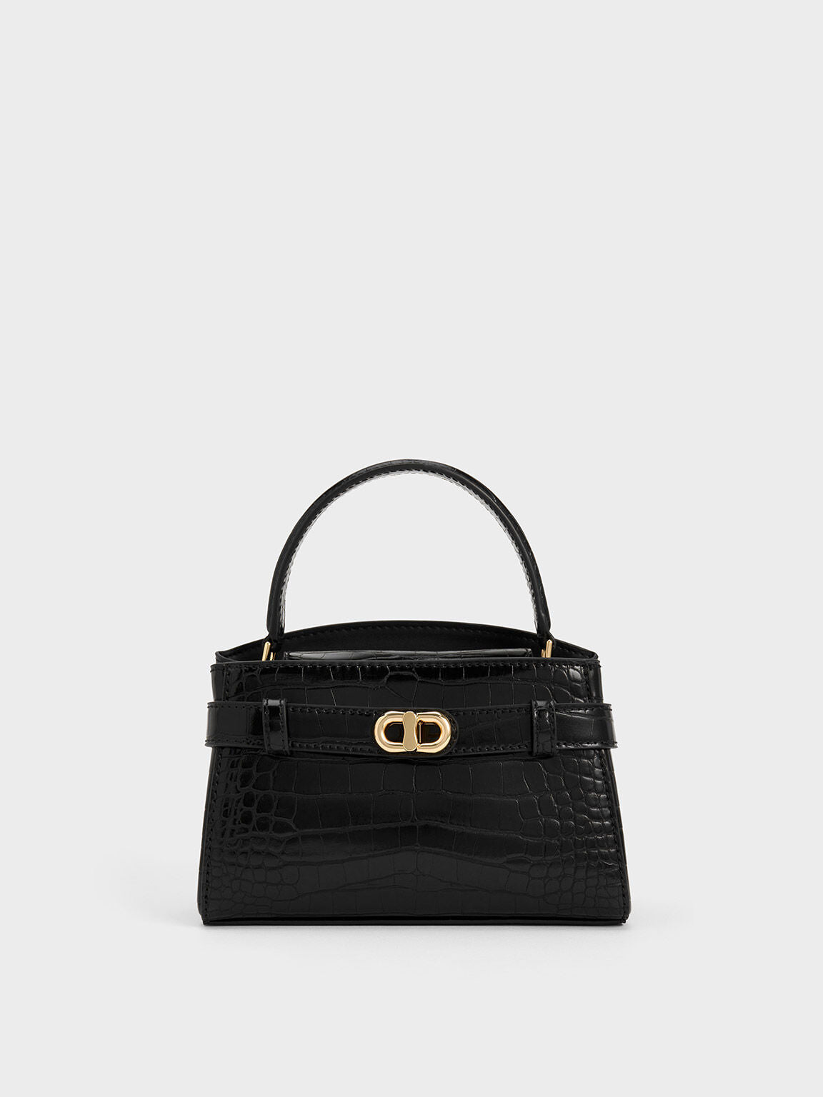 Charles & Ke*th - Aubrielle Croc-Effect Top Handle Bag - Black