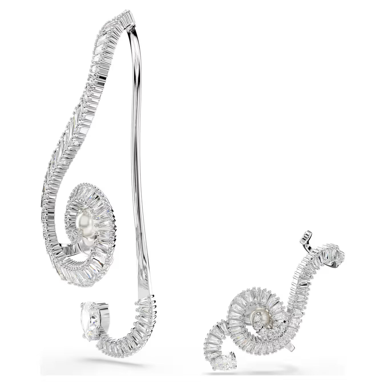 Swar*vski -Ariana Grande x Swarovski clip earrings Asymmetrical design, Crystal pearl, Baguette cut, White, Rhodium plated-5720866