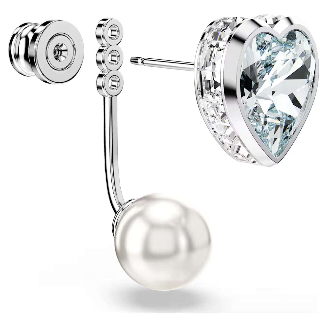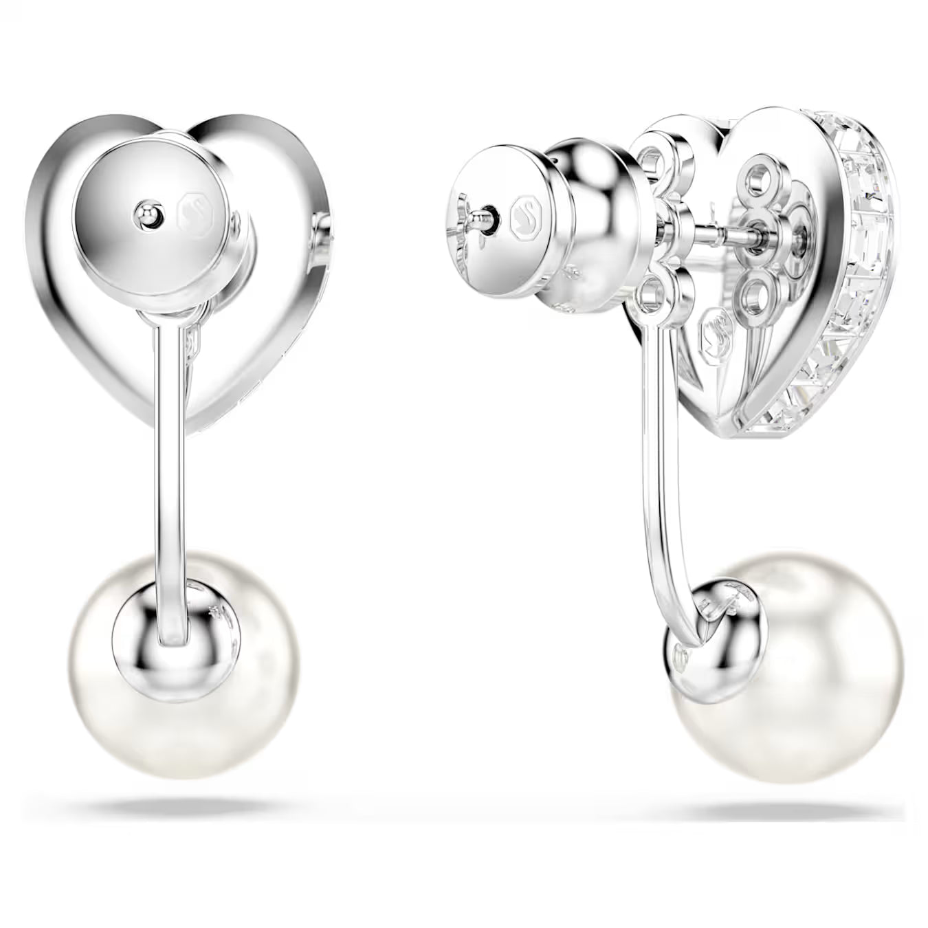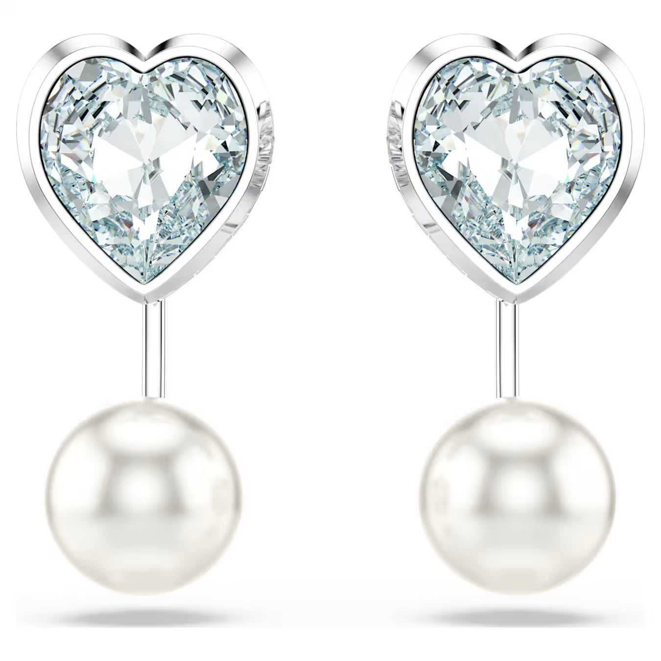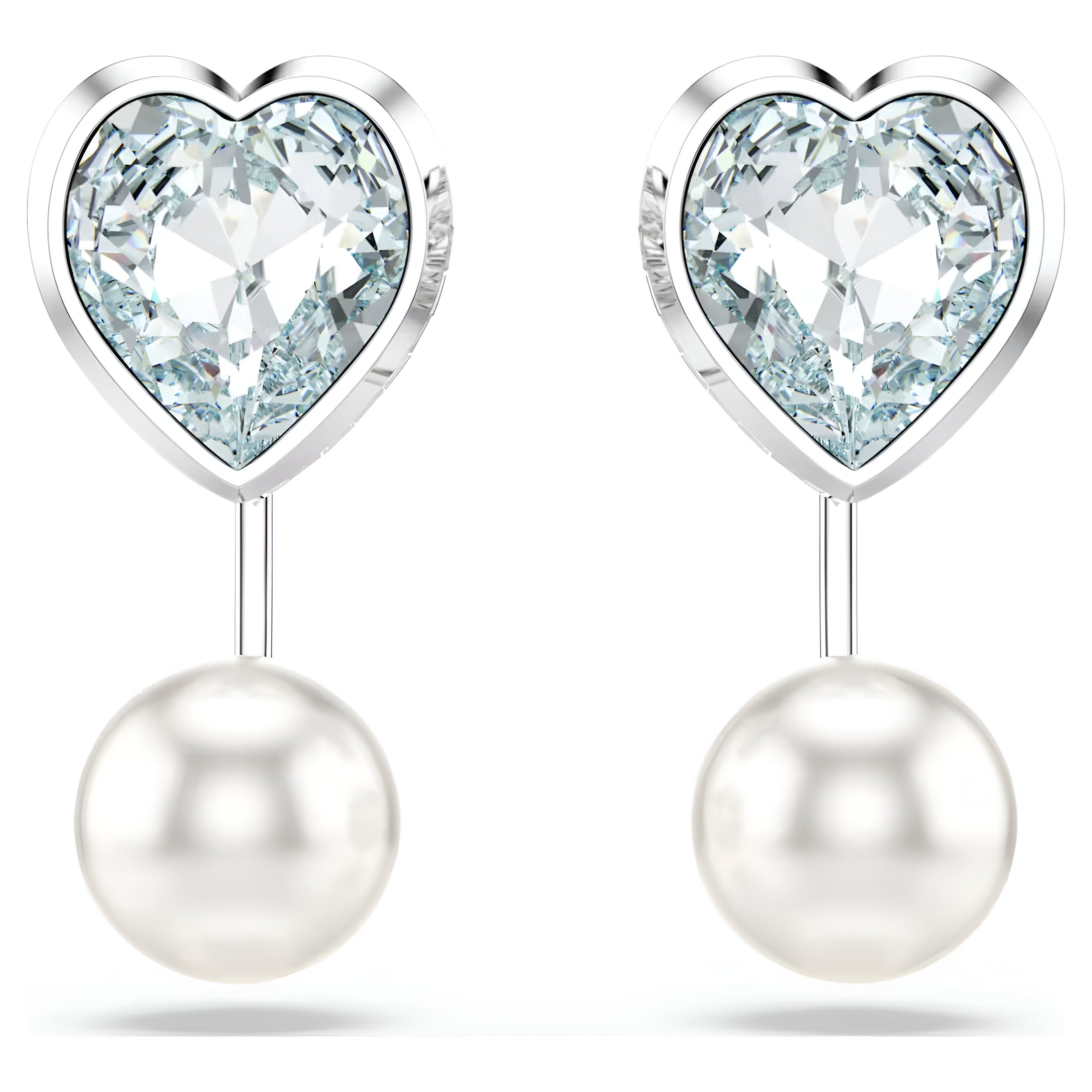 Swar*vski -Imber earring jackets Crystal pearl, Heart cut, Heart, Blue, Rhodium plated-5711347