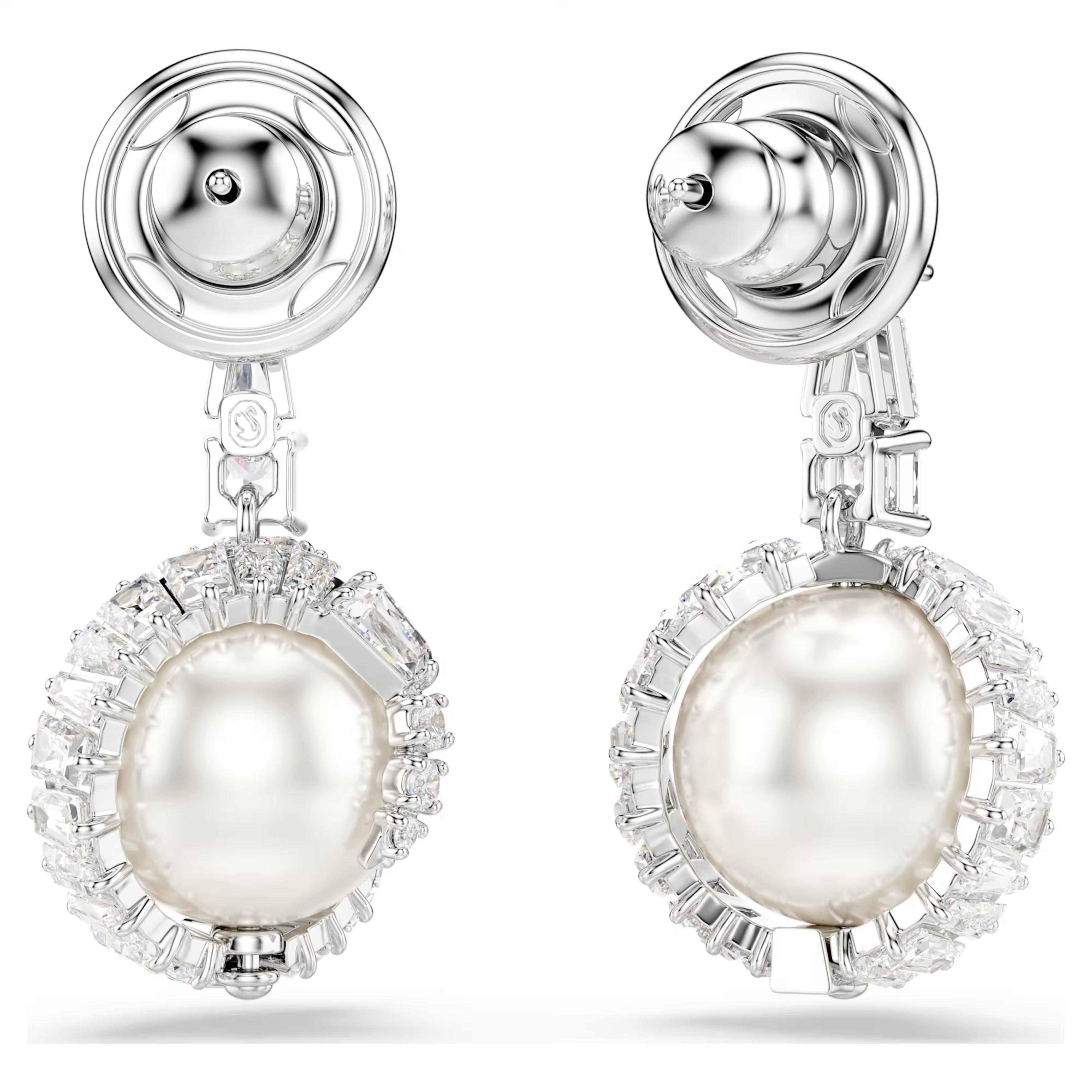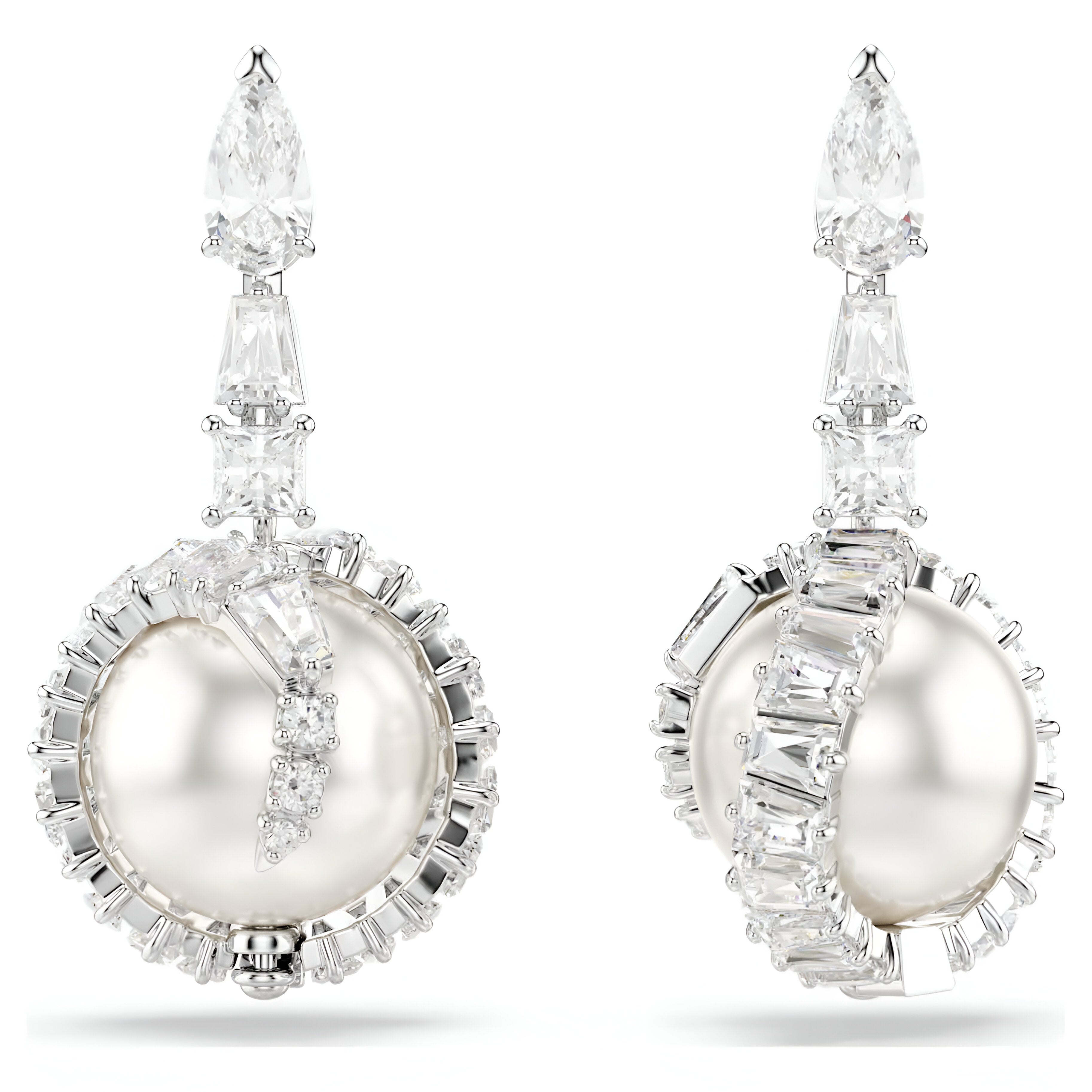 Swar*vski -Snake drop earrings Crystal pearl, Mixed cuts, Year of the Snake, White, Rhodium plated-5714668
