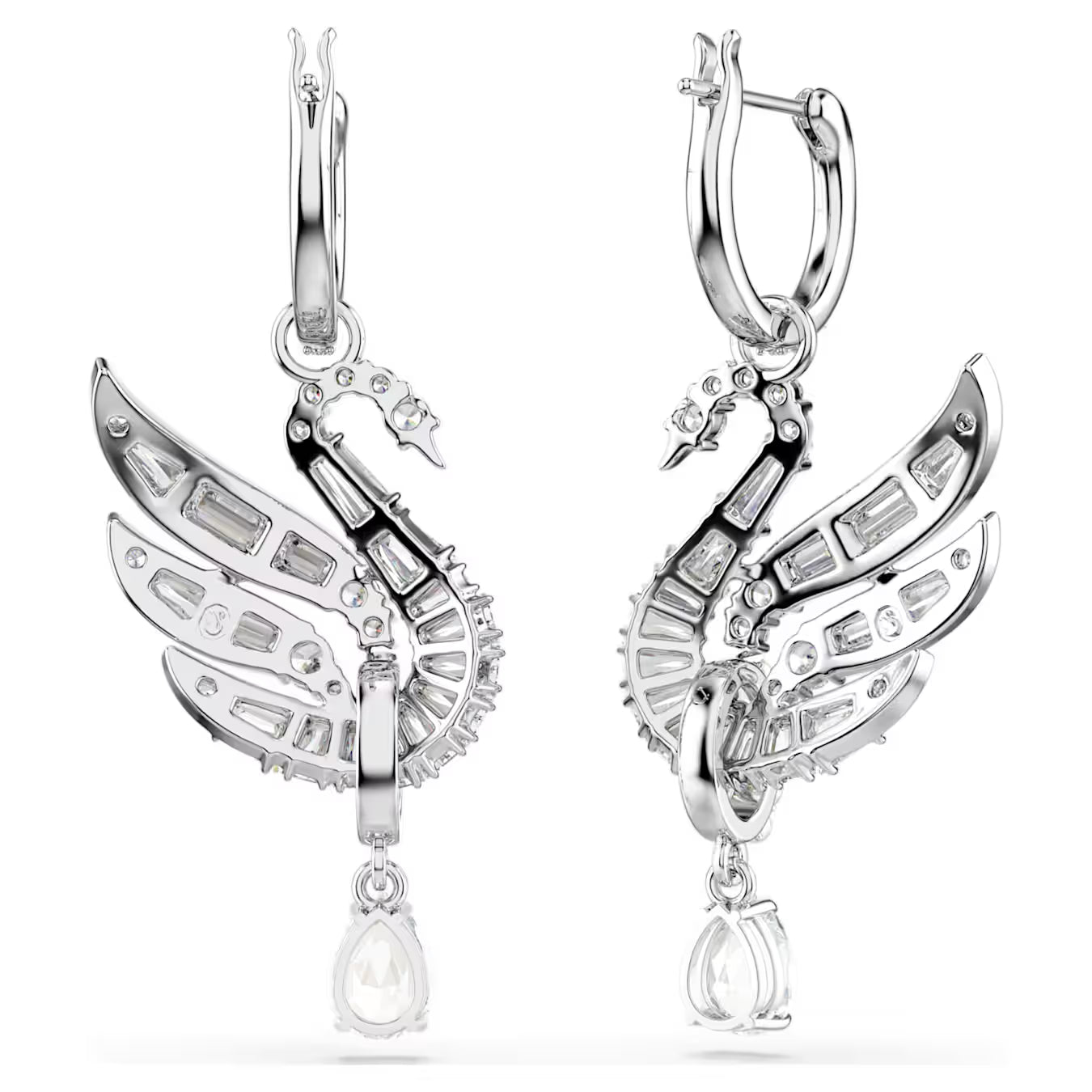 Swar*vski -Swan earrings Swan, White, Rhodium plated-5723388