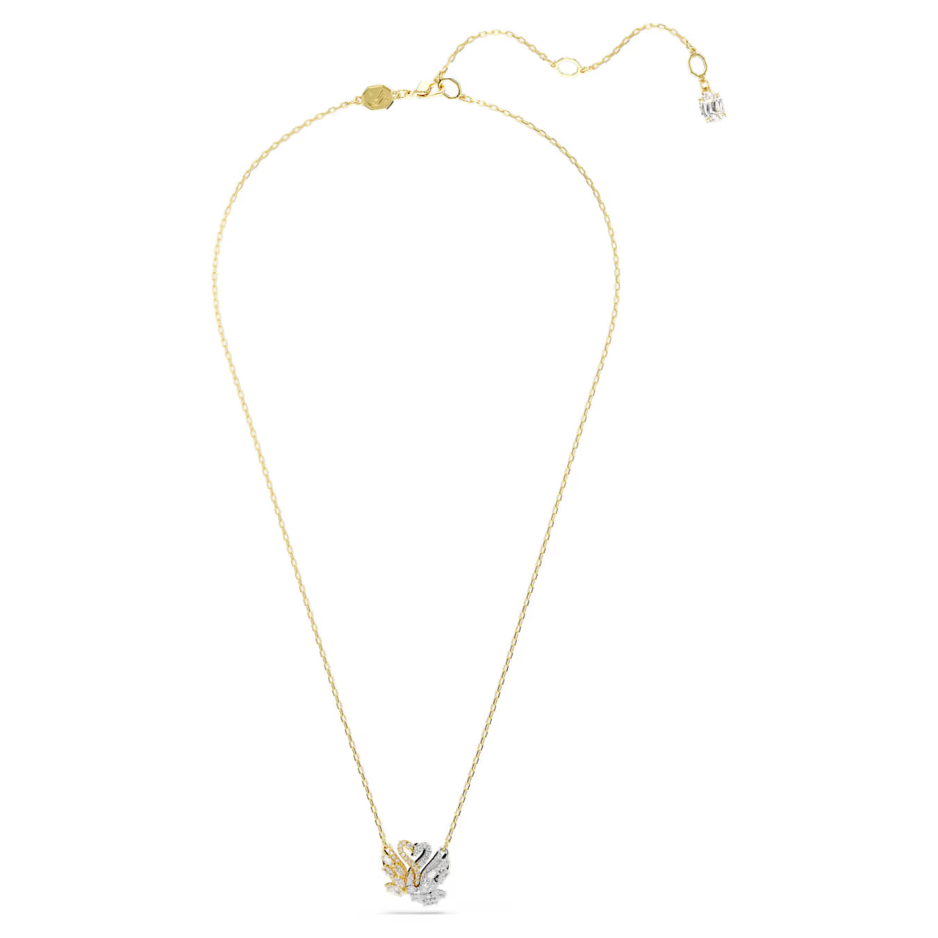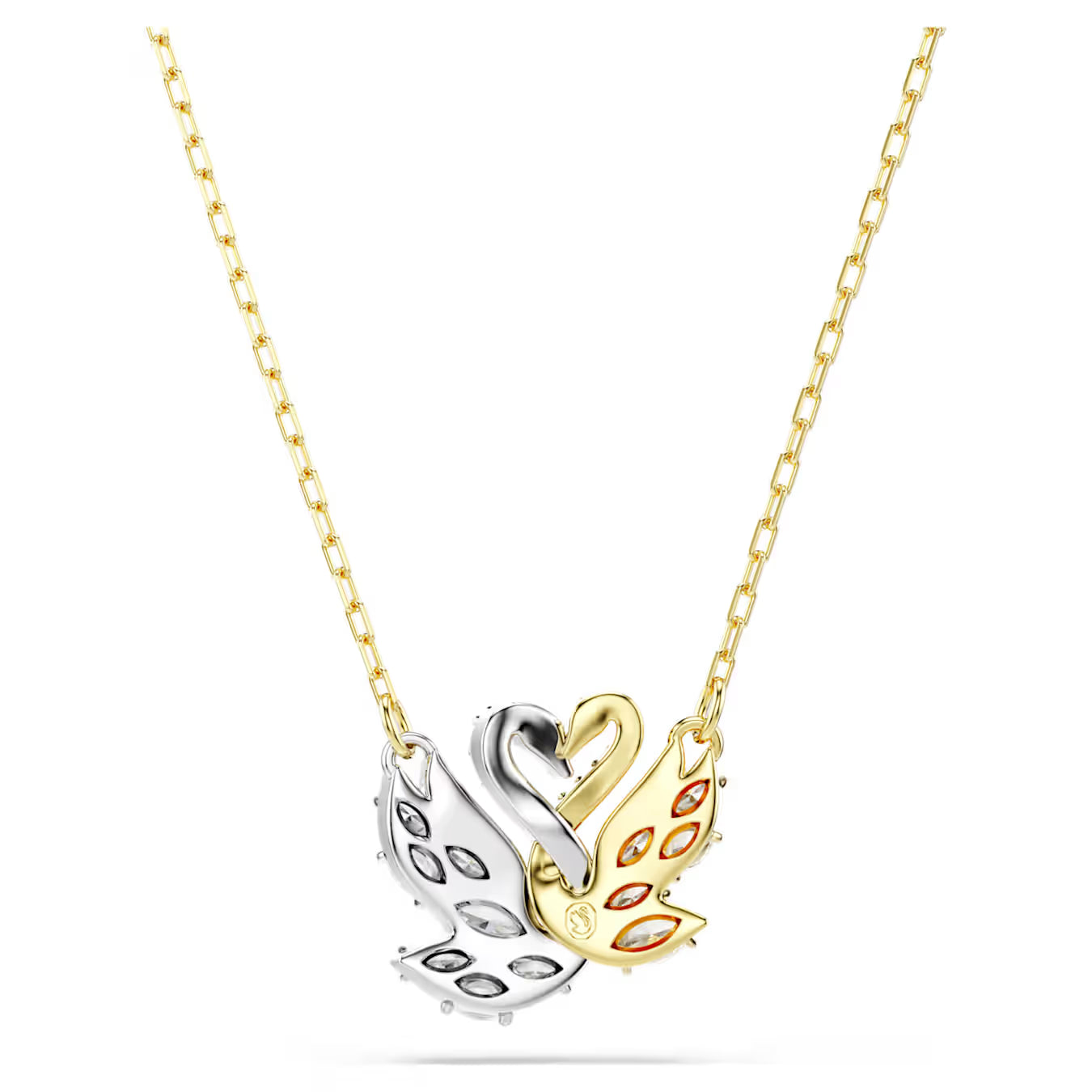 • Celebrating Swarovski’s eternal emblem of love and beauty, this swan pendant will infuse any outfit with elegance. Suspended from a delicate chain, the central motif showcases two intertwined swans, in rhodium and gold-tone plating, with an all-over decoration of white Swarovski Zirconia in round and marquise cuts. A beautiful example of Swarovski savoir-faire that would make a timeless gift for the Lunar New Year.