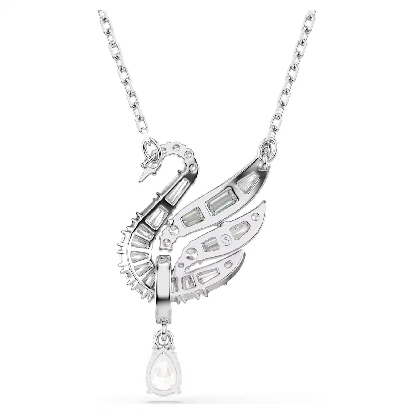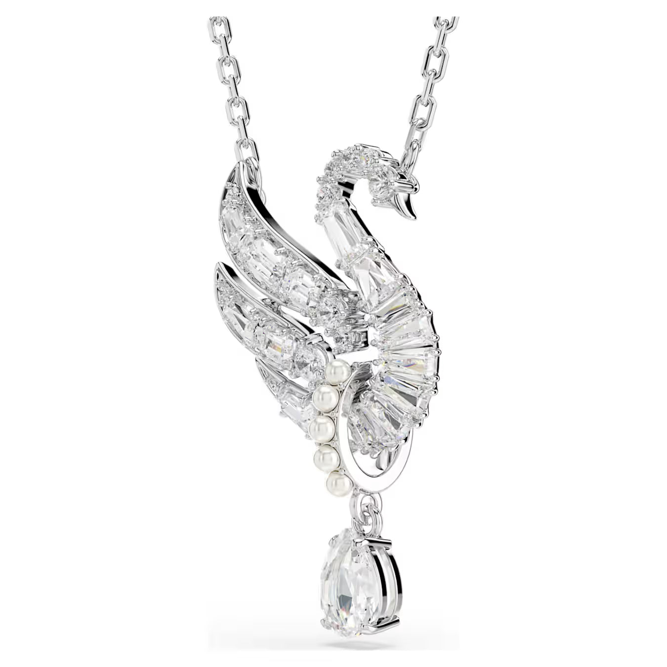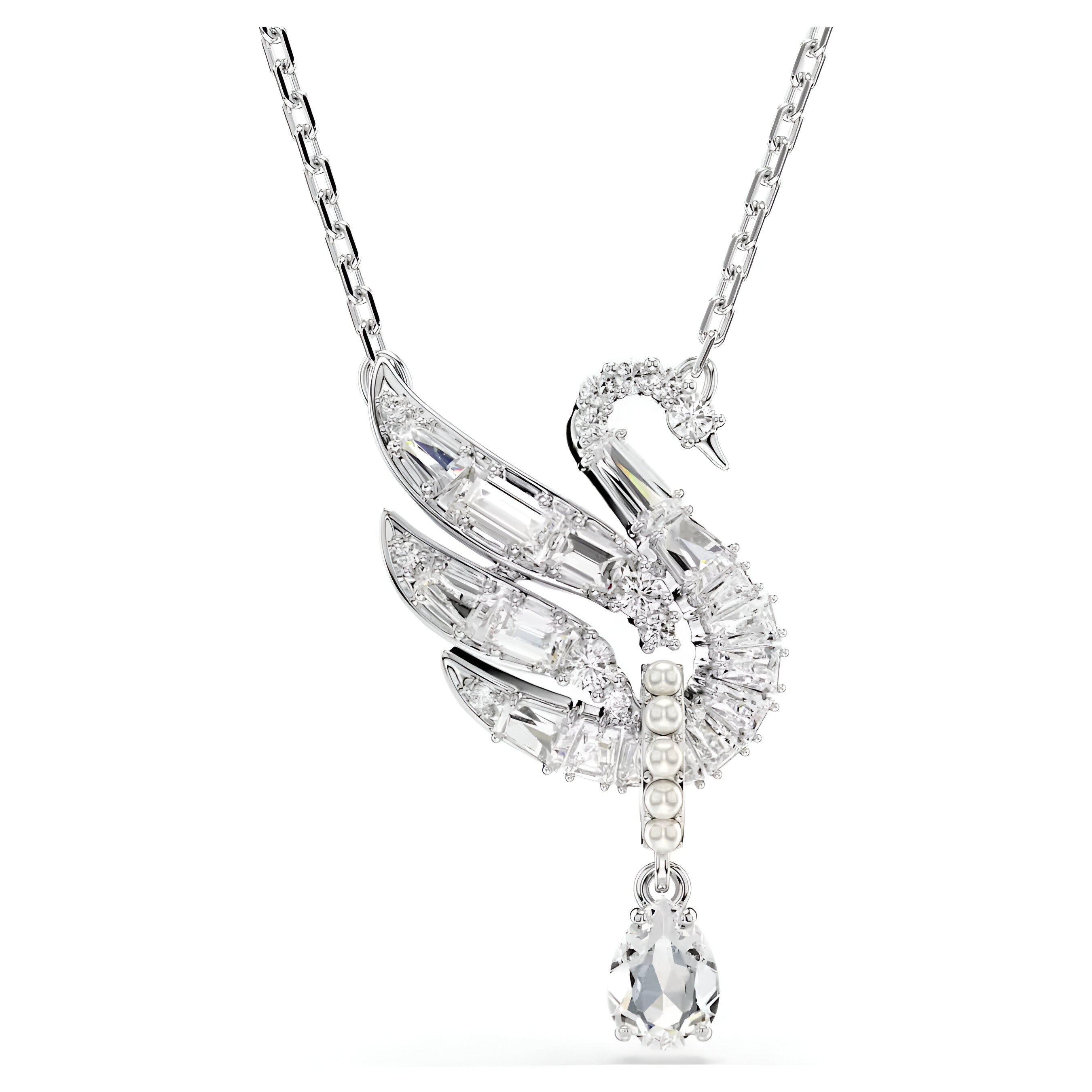 • With exquisite beauty in every detail, this meaningful pendant celebrates the graceful qualities of the iconic Swarovski swan. Suspended from a delicate chain, the central motif is adorned in clear Swarovski Zirconia and features a single pear cut that hangs from a pavé hoop of Swarovski Crystal Pearls. Wear it alongside the matching earrings for a look of pure sophistication.